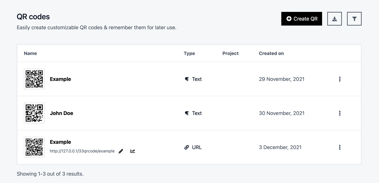 Static QR codes are fixed, meaning that all the data is directly embedded into the QR code. Once generated and printed for real-world usage, it can't be changed.